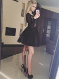 A-Line Scoop Neck Short Black Homecoming Dress with Appliques